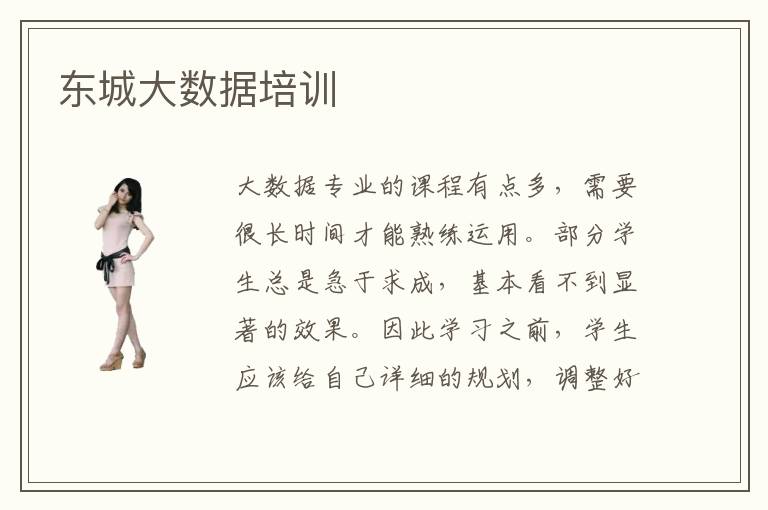大數(shù)據(jù)專業(yè)的課程有點多,需要很長時間才能熟練運用。部分學(xué)生總是急于求成,基本看不到顯著的效果。因此學(xué)習(xí)之前,學(xué)生應(yīng)該給自己詳細的規(guī)劃,調(diào)整好學(xué)習(xí)動力和態(tài)度,認真安排學(xué)習(xí)時間,在規(guī)定時間內(nèi)完成各項任務(wù)。要是覺得學(xué)習(xí)壓力有點大,可以參考東城大數(shù)據(jù)培訓(xùn)的課程,老師會通過輕松的教學(xué)方法,讓大家熟練運用這些課程。大數(shù)據(jù)培訓(xùn)嚴不嚴,大數(shù)據(jù)培訓(xùn)機構(gòu)的課程相對嚴格,老師也很嚴謹?shù)慕虒W(xué)思路和培訓(xùn)方案,分析各種解題的難點和學(xué)習(xí)技巧,真正做到將所學(xué)知識點融會貫通。大數(shù)據(jù)培訓(xùn)多久,大數(shù)據(jù)培訓(xùn)機構(gòu)的時間可能在1個月到4個月之間,但是部分專業(yè)輔導(dǎo)機構(gòu)的課程不太一樣,培訓(xùn)的時間安排有差別,要是大數(shù)據(jù)專業(yè)輔導(dǎo)難度要大,培訓(xùn)時間會有所延長。