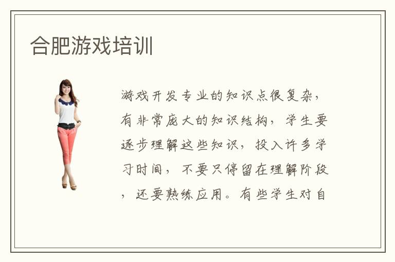 游戲開發(fā)專業(yè)的知識點很復雜,有非常龐大的知識結構,學生要逐步理解這些知識,投入許多學習時間,不要只停留在理解階段,還要熟練應用。有些學生對自己的能力不是很滿意,學習進度太慢,跟不上專業(yè)老師的上課節(jié)奏,不得不考慮合肥游戲培訓課程,得到更多老師的直接幫助和輔導。游戲培訓經(jīng)驗多嗎,游戲培訓機構的教學經(jīng)驗應該是比較豐富的,首先在于學校可制定完善教學體系,不同的學生都可以獲得對應性的游戲專業(yè)輔導方案,學習效果更顯著。游戲培訓水準相當優(yōu)越,老師一般情況下都會制定多種輔導課程,為學生帶來不同階段的訓練。只要學生在某些階段的能力不夠強,缺乏發(fā)展方向,不懂得基礎應用,老師都會進行詳細講解和分析,為大家?guī)砀嘤螒驅I(yè)的應用訓練。