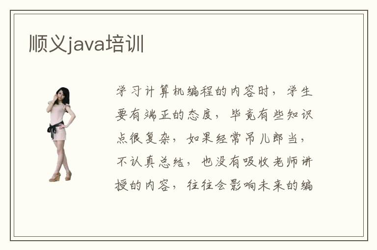 學(xué)習(xí)計(jì)算機(jī)編程的內(nèi)容時(shí),學(xué)生要有端正的態(tài)度,畢竟有些知識(shí)點(diǎn)很復(fù)雜,如果經(jīng)常吊兒郎當(dāng),不認(rèn)真總結(jié),也沒(méi)有吸收老師講授的內(nèi)容,往往會(huì)影響未來(lái)的編程學(xué)習(xí)效果。為了提高學(xué)習(xí)優(yōu)勢(shì),改善計(jì)算機(jī)編程的應(yīng)用水準(zhǔn),學(xué)生還可以報(bào)名順義java培訓(xùn)java培訓(xùn)學(xué)校,獲得更多專業(yè)老師的幫助。java輔導(dǎo)方法主要是遠(yuǎn)程輔導(dǎo)、小班輔導(dǎo)、現(xiàn)場(chǎng)展示、分組討論等等,這些輔導(dǎo)的方法都非常受大家歡迎,學(xué)習(xí)的效果也很不錯(cuò),為學(xué)生提供多種學(xué)習(xí)的樂(lè)趣,感受到培訓(xùn)班課程的豐富度,也有助于大大提高效率。java培訓(xùn)多少費(fèi)用,java培訓(xùn)機(jī)構(gòu)的收費(fèi)標(biāo)準(zhǔn)大概是3000~5000元,但這些只是普遍范圍,還沒(méi)有一個(gè)統(tǒng)一的數(shù)字。學(xué)生要先分析自己的知識(shí)弱項(xiàng),選擇合適的java編程教學(xué)課程,然后再確定具體的費(fèi)用。