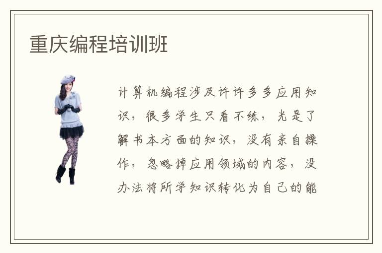 計算機編程涉及許許多多應(yīng)用知識,很多學(xué)生只看不練,光是了解書本方面的知識,沒有親自操作,忽略掉應(yīng)用領(lǐng)域的內(nèi)容,沒辦法將所學(xué)知識轉(zhuǎn)化為自己的能力,因此學(xué)習的障礙很多,掌握的效果并不是很好。為了體現(xiàn)計算機編程的學(xué)習優(yōu)勢,學(xué)生也可以關(guān)注重慶編程培訓(xùn)班,找到更多合適的教學(xué)內(nèi)容。編程培訓(xùn)班要求多嗎,編程培訓(xùn)機構(gòu)的要求非常嚴格,比如要求要完善的知識體系,可以理解計算機編程的理論知識,提高專業(yè)應(yīng)用的能力。另外,學(xué)生在培訓(xùn)時如果沒有主動學(xué)習的習慣,老師都會及時培養(yǎng)學(xué)生的思維,鼓勵大家相互交流,探討許多解決的方法。編程培訓(xùn)班優(yōu)勢是什么,主要是學(xué)習效率高,課程類型多種多樣,通過網(wǎng)絡(luò)教學(xué)以及現(xiàn)場教學(xué)等等方式,為大家講解細致的計算機編程內(nèi)容。