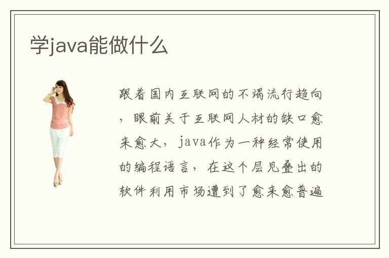 跟著國(guó)內(nèi)互聯(lián)網(wǎng)的不竭流行趨向,眼前關(guān)于互聯(lián)網(wǎng)人材的缺口愈來(lái)愈大,java作為一種經(jīng)常使用的編程語(yǔ)言,在這個(gè)層見疊出的軟件利用市場(chǎng)遭到了愈來(lái)愈普遍的利用。那末,學(xué)java能做什么呢各大企業(yè)都宣布了高薪招聘java相干職員的信息,是以足以申明了java的前景非常廣漠。學(xué)好了java就能為企業(yè)開發(fā)設(shè)計(jì)出新式的軟件,也能扶植好各大網(wǎng)站,完美信息。學(xué)java能做什么推薦電腦學(xué)校