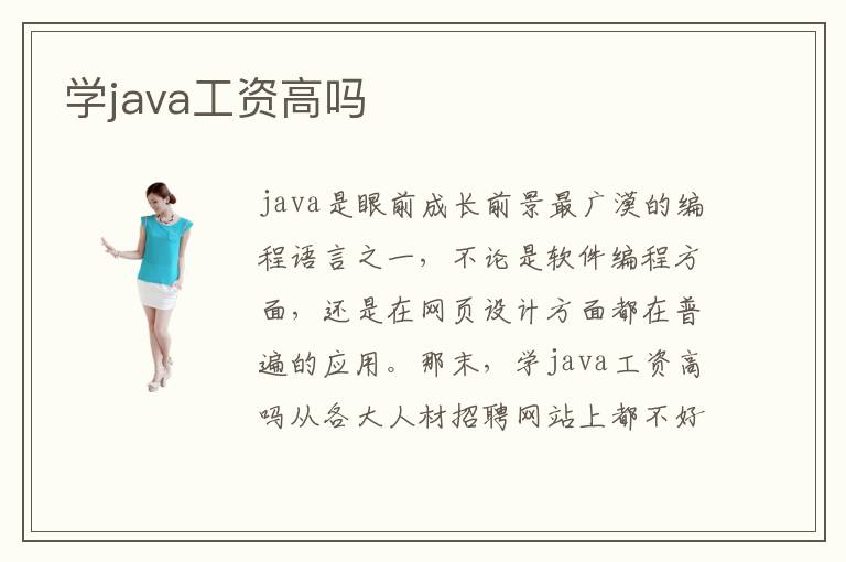 java是眼前成長(zhǎng)前景最廣漠的編程語(yǔ)言之一,不論是軟件編程方面,還是在網(wǎng)頁(yè)設(shè)計(jì)方面都在普遍的應(yīng)用。那末,學(xué)java工資高嗎從各大人材招聘網(wǎng)站上都不好看出,各大企業(yè)都在大批招收java開(kāi)發(fā)相干方面的職員,一般工資都在大幾千擺布,按照應(yīng)聘者經(jīng)歷的分歧工資待遇也分歧,但均勻工資都在一萬(wàn)元擺布,是國(guó)內(nèi)眼前最高薪的十大職業(yè)之一。學(xué)javajava工資高嗎推薦電腦學(xué)校