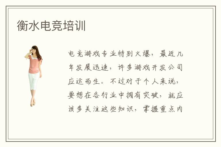 介紹: 衡水匯英女子職業(yè)學校是經上級教育部門批準成立的一所專業(yè)培養(yǎng)女性人才的職業(yè)學校。學校座落在衡水市高新技術開發(fā)區(qū),學校環(huán)境優(yōu)雅,體現了人文思想,是河北省“園林式單位”。有標準的田徑運動場、籃球場、健身園、語音室、微機室、書畫室、形體房、電子琴室等,是一所現代化的花