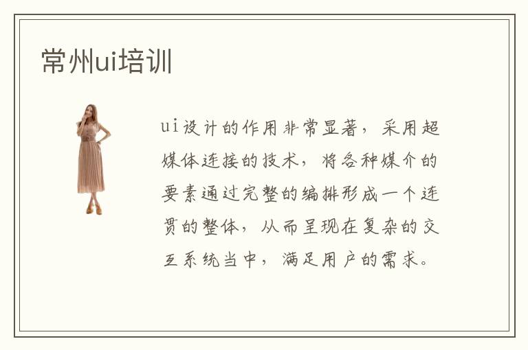 ui設(shè)計(jì)的作用非常顯著,采用超媒體連接的技術(shù),將各種媒介的要素通過完整的編排形成一個連貫的整體,從而呈現(xiàn)在復(fù)雜的交互系統(tǒng)當(dāng)中,滿足用戶的需求。在界面設(shè)計(jì)的時候,需要遵循一些基本的原則和要求,首先要符合用戶的使用習(xí)慣,同時也要保持整潔美觀,風(fēng)格一致,表達(dá)主要的網(wǎng)頁信息和情感。常州ui培訓(xùn)ui培訓(xùn)學(xué)校會介紹界面設(shè)計(jì)的方法以及具體的流程,也會安排基礎(chǔ)性的ui設(shè)計(jì)課程,展示基本設(shè)計(jì)元素和分類,使大家針對不同的功能以及情感的表達(dá),做出不一樣的精美設(shè)計(jì)。ui輔導(dǎo)機(jī)構(gòu)如何,ui輔導(dǎo)機(jī)構(gòu)的技術(shù)含量很高,可以解決很多應(yīng)用的難題,使大家熟練掌握界面設(shè)計(jì)的技術(shù)要求。ui設(shè)計(jì)師的前景很廣闊,首先是工作崗位類型很多,待遇高,晉升的壓力也不是很大。