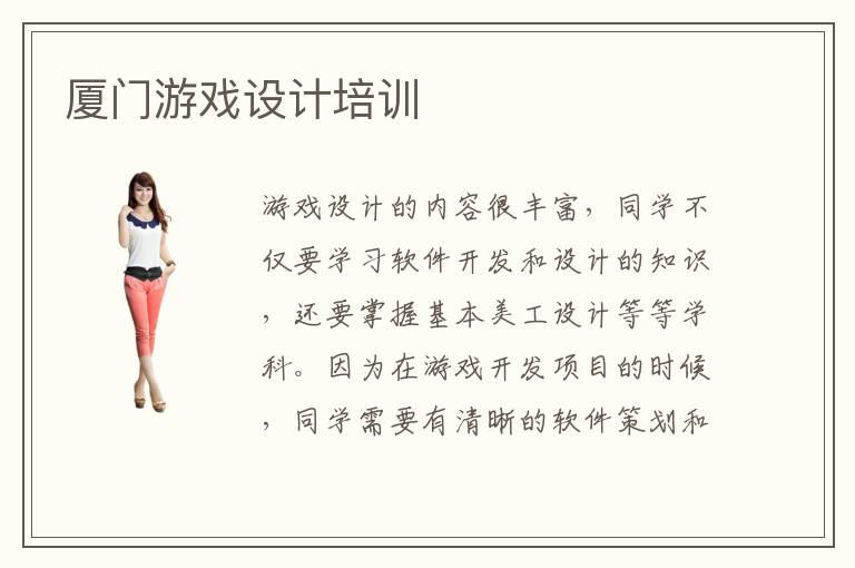 游戲設計的內(nèi)容很豐富,同學不僅要學習軟件開發(fā)和設計的知識,還要掌握基本美工設計等等學科。因為在游戲開發(fā)項目的時候,同學需要有清晰的軟件策劃和軟件功能分析、需求分析,然后再進行游戲的場景制作、背景制作以及人物、音效制作等等。廈門游戲設計培訓設計培訓學校會詳細介紹每一個步驟,分析游戲設計需要用到的技術,使大家的技術能力更強,彌補個人的知識漏洞。另外學校會為大家介紹游戲設計就業(yè)前景,使大家更關注行業(yè)的動態(tài),然后針對行業(yè)的發(fā)展情況和現(xiàn)狀,調(diào)整學習的方向,把握住時代發(fā)展機遇。游戲設計培訓如何收費,游戲設計輔導班收費并不固定,有些游戲設計學校的收費標準高,主要原因是教學口碑非常好,任務非常緊湊,同學的進步空間大,自然會有很高的收費。