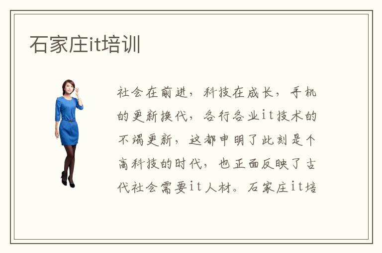 社會在前進(jìn),科技在成長,手機(jī)的更新?lián)Q代,各行各業(yè)it技術(shù)的不竭更新,這都申明了此刻是個高科技的時代,也正面反映了古代社會需要it人材。石家莊it培訓(xùn)怎么樣石家莊it培訓(xùn)好欠好石家莊it培訓(xùn)費用有多高這些成績也就成了想要學(xué)習(xí)it技術(shù),進(jìn)入it行業(yè)的人們應(yīng)當(dāng)思慮的成績。不消擔(dān)憂,接上去,我就來告知人人閉于石家莊it培訓(xùn)這些成績的相干應(yīng)案吧。石家莊it培訓(xùn)推薦電腦學(xué)校