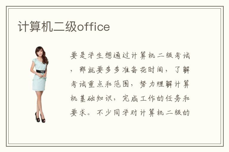 要是學(xué)生想通過計(jì)算機(jī)二級考試,那就要多多準(zhǔn)備花時間,了解考試重點(diǎn)和范圍,努力理解計(jì)算機(jī)基礎(chǔ)知識,完成工作的任務(wù)和要求。不少同學(xué)對計(jì)算機(jī)二級的基礎(chǔ)掌握不夠深入,沒有找到學(xué)習(xí)方法,或者學(xué)習(xí)不夠充分,花了很長時間去學(xué)習(xí),也難以看到成果。這時可以報(bào)名計(jì)算機(jī)二級office輔導(dǎo)班,完成老師布置的課程,提升辦公軟件的應(yīng)用能力,從而凸顯出計(jì)算機(jī)二級office考試的水平。計(jì)算機(jī)二級哪個好,其實(shí)每一個課程都有不一樣的作用,有些同學(xué)工作方面需要大量的計(jì)算機(jī)編程學(xué),可以學(xué)C語言或者是python編程。但如果是在工作中需要用到大量的辦公軟件,可以報(bào)名計(jì)算機(jī)MS office考試。只要認(rèn)真學(xué)習(xí)考試的知識,往往就能熟練掌握基礎(chǔ)的辦公軟件應(yīng)用方法,提高工作的效率。