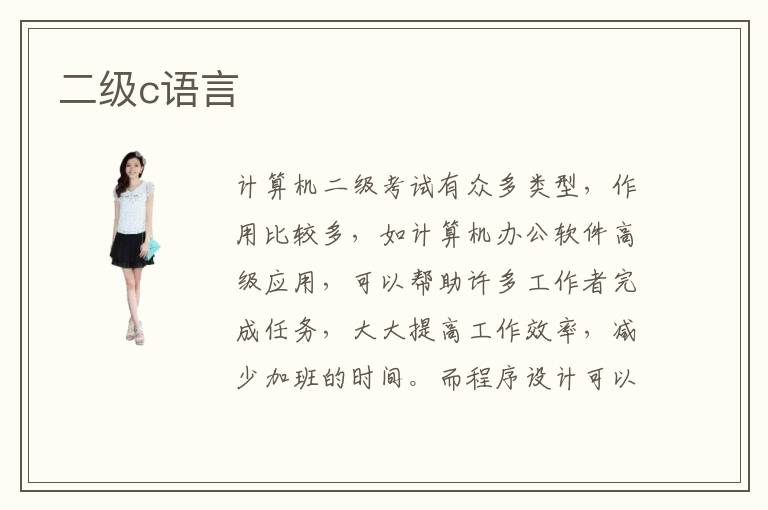 計算機二級考試有眾多類型,作用比較多,如計算機辦公軟件高級應用,可以幫助許多工作者完成任務,大大提高工作效率,減少加班的時間。而程序設計可以幫助很多人設計出想要的程序功能,減少許多重復性的工作。有些學生對這些專業(yè)的知識很感興趣,但理解不夠深入,導致考試成績不理想。學生要想通過二級c語言考試,就應該認真做準備,了解考試思路和考察方向。什么二級c語言學校好,在選擇計算機二級c語言培訓學校時,學生要重視培訓機構的綜合能力、教學方法、課程安排、師資力量。有些學校的師資力量可謂雄厚,老師的專業(yè)水平更高,教學經(jīng)驗更豐富,更容易體現(xiàn)學習優(yōu)勢。二級c語言考試有哪些內(nèi)容,主要有單項選擇題、程序設計題、程序改錯題、程序填空題。