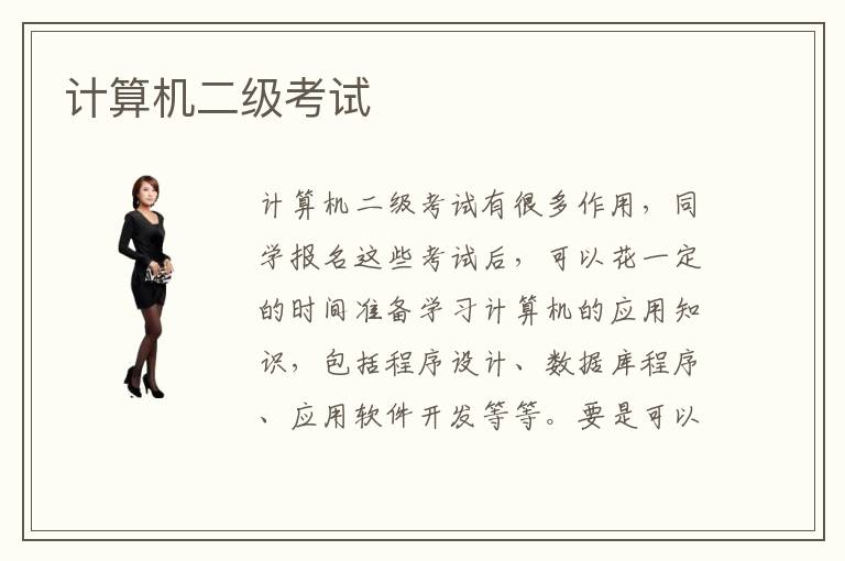 計(jì)算機(jī)二級(jí)考試有很多作用,同學(xué)報(bào)名這些考試后,可以花一定的時(shí)間準(zhǔn)備學(xué)習(xí)計(jì)算機(jī)的應(yīng)用知識(shí),包括程序設(shè)計(jì)、數(shù)據(jù)庫(kù)程序、應(yīng)用軟件開發(fā)等等。要是可以通過(guò)考試,說(shuō)明軟件開發(fā)和程序設(shè)計(jì)、軟件辦公等等方面的水平都不錯(cuò),可以應(yīng)付各種復(fù)雜的技術(shù)工作。計(jì)算機(jī)二級(jí)考試通過(guò)率相當(dāng)高,許多同學(xué)都能獲得70分到90分左右的分?jǐn)?shù),不過(guò)在復(fù)習(xí)階段要有嚴(yán)謹(jǐn)?shù)膫淇紲?zhǔn)備,針對(duì)考試的真題進(jìn)行嚴(yán)格的訓(xùn)練,因?yàn)橥甑恼骖}都有比較高的相似度,重要的知識(shí)反反復(fù)復(fù)出現(xiàn),只要大家細(xì)心復(fù)習(xí),成績(jī)一般都不會(huì)很差。計(jì)算機(jī)二級(jí)要學(xué)什么課程,計(jì)算機(jī)二級(jí)考試內(nèi)容相對(duì)有點(diǎn)多,比如部分同學(xué)報(bào)名的是python程序語(yǔ)言設(shè)計(jì),主要考察的是基本的操作和簡(jiǎn)單應(yīng)用、綜合應(yīng)用等等,當(dāng)然要針對(duì)這些題型加以訓(xùn)練。