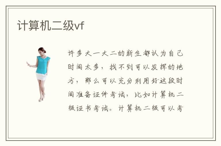 許多大一大二的新生都認(rèn)為自己時間太多,找不到可以發(fā)揮的地方,那么可以充分利用好這段時間準(zhǔn)備證件考試,比如計算機(jī)二級證書考試。計算機(jī)二級可以考察同學(xué)的電腦應(yīng)用能力和辦公軟件的操作水平,要是可以通過這些考試,說明個人的計算機(jī)辦公軟件應(yīng)用能力比較強(qiáng),具備程序編程和數(shù)據(jù)庫編程的設(shè)計能力。計算機(jī)二級vf的成績查詢時間是5月和11月,3月份的考試是5月份中下旬公布成績,9月份的考試是11月份下旬公布成績。計算機(jī)二級有什么用,計算機(jī)二級報考時間在備考期間,要重視應(yīng)用的訓(xùn)練,不僅要關(guān)注書本的知識,也要充分將應(yīng)用結(jié)合起來,從而獲得更多應(yīng)用的優(yōu)勢。若同學(xué)深入了解計算機(jī)專業(yè)的知識,計算機(jī)二級證書的難度并不是太大,一般都能拿到比較高的分?jǐn)?shù)。