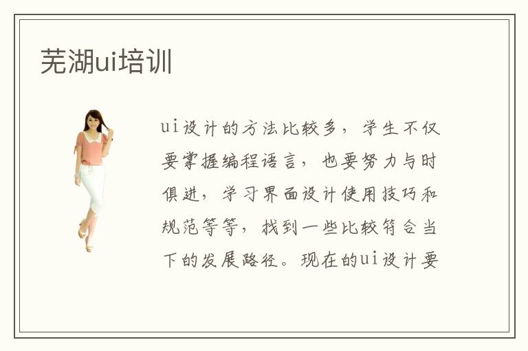 ui設(shè)計的方法比較多,學(xué)生不僅要掌握編程語言,也要努力與時俱進,學(xué)習界面設(shè)計使用技巧和規(guī)范等等,找到一些比較符合當下的發(fā)展路徑?,F(xiàn)在的ui設(shè)計要求越來越多,同學(xué)不能夠掉以輕心,要明確如今的ui設(shè)計范圍以及設(shè)計的目標,搜索一些經(jīng)典的案例,然后進行模仿或者是更改,也許會有較多的收獲。蕪湖ui培訓(xùn)ui培訓(xùn)學(xué)校資源非常多,有非常完善的學(xué)習計劃,每天都會有檢測和課后的作業(yè),學(xué)生也可以適當調(diào)整學(xué)習節(jié)奏,從而獲得更快的提升。ui培訓(xùn)學(xué)??梢钥紤]嗎,當然可以考慮ui輔導(dǎo)機構(gòu),因為機構(gòu)類型越來越多,每個學(xué)校的教學(xué)重點和ui課程培訓(xùn)方向都不同,大家要去分析哪些好。ui設(shè)計師有哪些技術(shù)要求,ui設(shè)計師要理解基本的設(shè)計概念,擁有良好的審美能力,制作出漂亮的作品,滿足甲方需求。