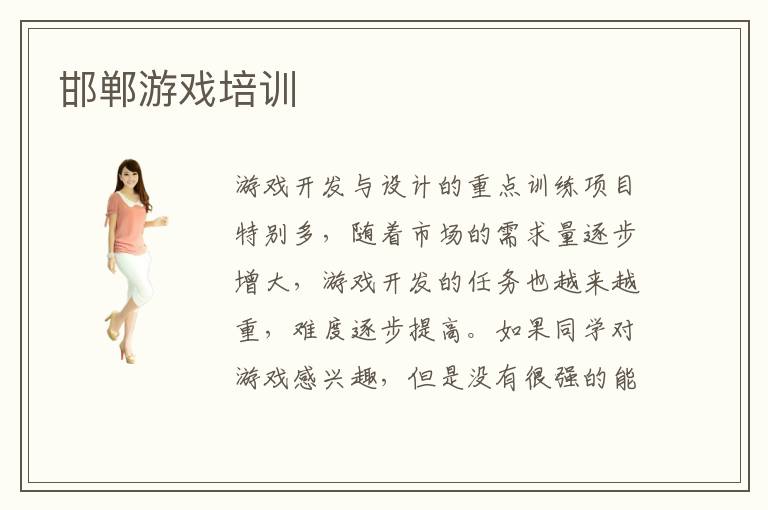 游戲開發(fā)與設(shè)計的重點(diǎn)訓(xùn)練項目特別多,隨著市場的需求量逐步增大,游戲開發(fā)的任務(wù)也越來越重,難度逐步提高。如果同學(xué)對游戲感興趣,但是沒有很強(qiáng)的能力,要及時把握住機(jī)遇,努力學(xué)習(xí)有關(guān)的課程,掌握游戲開發(fā)的各個技術(shù)要求和重要環(huán)節(jié),凸顯個人的應(yīng)用水準(zhǔn)和工作價值。邯鄲游戲培訓(xùn)學(xué)校的課程非常好,要是學(xué)生遇到某些課程難點(diǎn),老師會進(jìn)行針對性調(diào)整,只要同學(xué)有不懂的地方,老師都會適當(dāng)放慢腳步,為各位同學(xué)分析和詳細(xì)介紹。游戲培訓(xùn)班排名很重要,可以分析學(xué)校的教學(xué)質(zhì)量、水平以及教學(xué)優(yōu)勢。游戲輔導(dǎo)班授課方法比較多,包括興趣引導(dǎo),入門基礎(chǔ)輔導(dǎo),就業(yè)指導(dǎo),網(wǎng)絡(luò)指導(dǎo),實(shí)踐應(yīng)用指導(dǎo)等等,雖然有些同學(xué)沒有報班經(jīng)驗,但老師會深入淺出,幫助大家理解專業(yè)知識。