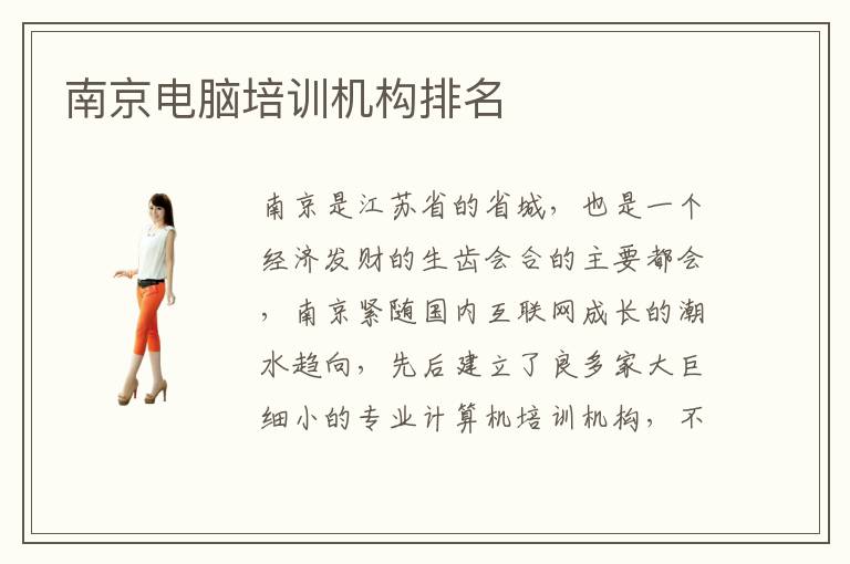 南京是江蘇省的省城,也是一個經(jīng)濟發(fā)財?shù)纳X會合的主要都會,南京緊隨國內(nèi)互聯(lián)網(wǎng)成長的潮水趨向,先后建立了良多家大巨細小的專業(yè)計算機培訓(xùn)機構(gòu),不竭為國內(nèi)的計算機行業(yè)成長挑供新鮮的新興氣力。這么多家的計算機專業(yè)培訓(xùn)機構(gòu),你曉得哪家比擬較好些,哪家比擬較差些嘛人人在選擇計算機培訓(xùn)機構(gòu)的時辰,可以參考南京電腦培訓(xùn)機構(gòu)電腦培訓(xùn)機構(gòu)排名的相干資料。南京電腦培訓(xùn)電腦培訓(xùn)機構(gòu)排名推薦電腦學(xué)校