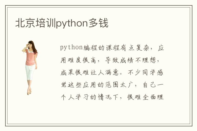 python編程的課程有點復(fù)雜,應(yīng)用難度很高,導(dǎo)致成績不理想,成果很難讓人滿意。不少同學(xué)感覺這些應(yīng)用的范圍太廣,自己一個人學(xué)習(xí)的情況下,很難全面理解重要的知識,所以會尋找技術(shù)輔導(dǎo)班的幫助,盡可能學(xué)習(xí)更多深層次的應(yīng)用。python培訓(xùn)北京多少錢取決于個人選擇的學(xué)校類型和課程類型。假如學(xué)生選擇高難度的課程,需要花比較長的時間,也要求更高水平的老師,報名費可能要5000到1萬元。python網(wǎng)上教學(xué)機構(gòu)本身就有很多種優(yōu)勢,包括教學(xué)課程很豐富,學(xué)習(xí)過程非常有趣,學(xué)習(xí)氛圍非常濃郁,要是學(xué)生可以得到這些學(xué)校的指導(dǎo),會有很好的學(xué)習(xí)成果。python應(yīng)用很多,比較常見的是前端開發(fā)與設(shè)計、網(wǎng)頁工程與制作、軟件開發(fā),都有非常重要的應(yīng)用價值和工作價值。
