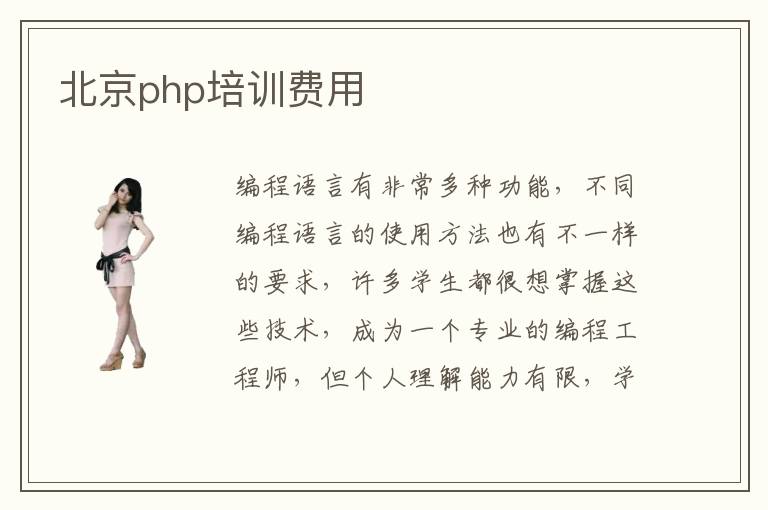 編程語言有非常多種功能,不同編程語言的使用方法也有不一樣的要求,許多學(xué)生都很想掌握這些技術(shù),成為一個專業(yè)的編程工程師,但個人理解能力有限,學(xué)習(xí)成績不太好,學(xué)習(xí)過程會很被動。其實大家要想深層次了解php編程,可以報名輔導(dǎo)班,由老師介紹重點(diǎn)項目,學(xué)生完成這些訓(xùn)練后,會有更大的進(jìn)展。北京php培訓(xùn)費(fèi)用可能是5000到1萬元,其實同學(xué)基礎(chǔ)比較差的情況下,可以選擇入門級的php課程,學(xué)習(xí)費(fèi)用不是很高,但學(xué)習(xí)效果卻很好。php培訓(xùn)班怎么選,應(yīng)該考慮培訓(xùn)班的綜合能力、專業(yè)水準(zhǔn)、培訓(xùn)的質(zhì)量。php有什么應(yīng)用,Php的主要應(yīng)用有非常多,比如網(wǎng)絡(luò)程序開發(fā)、頁面設(shè)計、數(shù)據(jù)庫系統(tǒng)結(jié)合、操作系統(tǒng)運(yùn)行等等。因為功能很強(qiáng)大,要求有點(diǎn)多,所以要多花時間學(xué)習(xí)。
