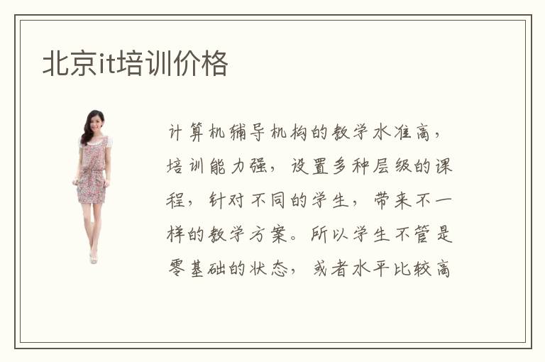 計(jì)算機(jī)輔導(dǎo)機(jī)構(gòu)的教學(xué)水準(zhǔn)高,培訓(xùn)能力強(qiáng),設(shè)置多種層級(jí)的課程,針對(duì)不同的學(xué)生,帶來(lái)不一樣的教學(xué)方案。所以學(xué)生不管是零基礎(chǔ)的狀態(tài),或者水平比較高的階段,都可以得到it培訓(xùn)班的幫助,從而獲得更多進(jìn)步。北京it培訓(xùn)價(jià)格也許需要4000到3萬(wàn)元,同學(xué)報(bào)名的培訓(xùn)機(jī)構(gòu)不同,課程類型不一樣,所需的費(fèi)用都會(huì)存在變化。it培訓(xùn)班的成果特別顯著,有些同學(xué)基礎(chǔ)很薄弱,能力不夠強(qiáng),老師就會(huì)介紹大量基礎(chǔ)課程,鞏固學(xué)員在計(jì)算機(jī)方面的知識(shí)結(jié)構(gòu),彌補(bǔ)知識(shí)的漏洞。要是同學(xué)應(yīng)用能力不過(guò)關(guān),老師就會(huì)更加強(qiáng)調(diào)應(yīng)用的訓(xùn)練,幫助大家提高it應(yīng)用水平。it專業(yè)有哪些崗位,主要的工作崗位有軟件開(kāi)發(fā)工程師、大數(shù)據(jù)分析師、網(wǎng)絡(luò)技術(shù)專員、前端設(shè)計(jì)工程師等等,都有很好的發(fā)展前景。
