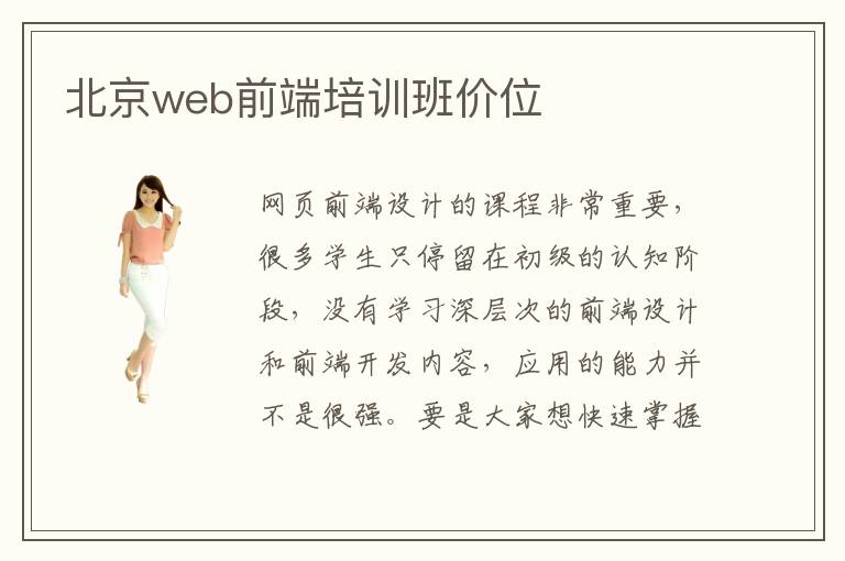 網(wǎng)頁前端設(shè)計的課程非常重要,很多學(xué)生只停留在初級的認(rèn)知階段,沒有學(xué)習(xí)深層次的前端設(shè)計和前端開發(fā)內(nèi)容,應(yīng)用的能力并不是很強(qiáng)。要是大家想快速掌握前端設(shè)計的知識,不僅可以自學(xué),也可以考慮報班。由專業(yè)輔導(dǎo)老師選擇對應(yīng)課程,解決應(yīng)用的難題,進(jìn)步效果會好。北京web前端培訓(xùn)web前端培訓(xùn)班價位可能在6000~1萬元,事實上影響因素特別多,比如報名的課程類型,老師的水平,學(xué)習(xí)時間等等。部分培訓(xùn)班特別專業(yè),教學(xué)成果有保障,收費標(biāo)準(zhǔn)往往比其他普通學(xué)校更高。web前端培訓(xùn)方式主要有網(wǎng)絡(luò)教學(xué)、1對1教學(xué)、應(yīng)用輔導(dǎo)、興趣引導(dǎo)等等,老師往往會結(jié)合大量的應(yīng)用方式,讓大家了解這些內(nèi)容。web前端是什么,指的就是網(wǎng)絡(luò)前臺的部分,包括互聯(lián)網(wǎng)用戶瀏覽的頁面。