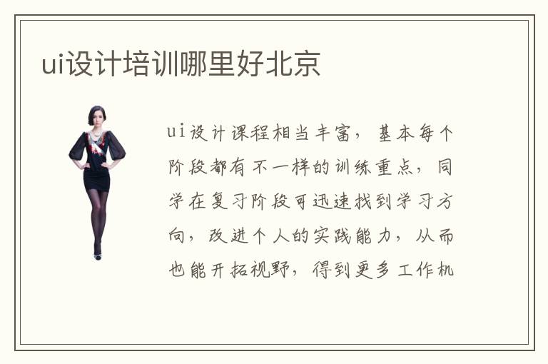 ui設(shè)計課程相當(dāng)豐富,基本每個階段都有不一樣的訓(xùn)練重點,同學(xué)在復(fù)習(xí)階段可迅速找到學(xué)習(xí)方向,改進(jìn)個人的實踐能力,從而也能開拓視野,得到更多工作機(jī)遇。不少同學(xué)基礎(chǔ)很差,業(yè)務(wù)能力不強(qiáng),綜合水平也非常有限,但得到ui設(shè)計老師的嚴(yán)格教學(xué)后,學(xué)生便可理解很多前沿的技術(shù),也能掌握工作當(dāng)中的應(yīng)用,節(jié)約大量的時間。ui設(shè)計培訓(xùn)哪里好北京,不同ui培訓(xùn)班的教學(xué)速度和水平都不同,學(xué)生要對比一下這些學(xué)校的綜合能力、教學(xué)成果保障、培訓(xùn)時間等等。假如學(xué)習(xí)成果不太有保障,說明學(xué)校并不是很好。ui設(shè)計培訓(xùn)班有什么授課方法,一般可考慮網(wǎng)上指導(dǎo)方法、線下指導(dǎo)方法、1對1輔導(dǎo)等等。ui設(shè)計行業(yè)的待遇相當(dāng)高,原因在于行業(yè)正處于供不應(yīng)求的階段,很多互聯(lián)網(wǎng)公司都會利用高待遇聘請專業(yè)人才。