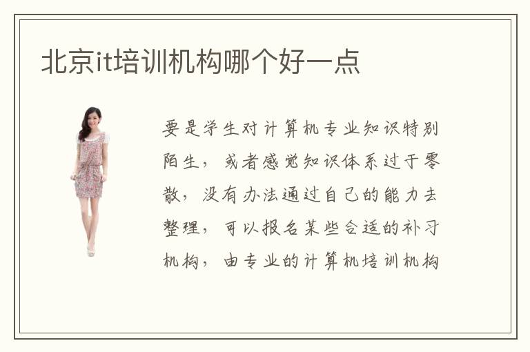 要是學(xué)生對計算機專業(yè)知識特別陌生,或者感覺知識體系過于零散,沒有辦法通過自己的能力去整理,可以報名某些合適的補習(xí)機構(gòu),由專業(yè)的計算機培訓(xùn)機構(gòu)的老師安排系統(tǒng)的課程,讓大家得到更多進步。在確定北京it培訓(xùn)it培訓(xùn)機構(gòu)哪個好一點之前,同學(xué)要了解一下it培訓(xùn)機構(gòu)老師的水平、教學(xué)經(jīng)驗、教學(xué)口碑等等。老師的教學(xué)能力直接影響教學(xué)的成績,假如指導(dǎo)老師經(jīng)驗不豐富,能力不夠強,同學(xué)也很難理解其中的專業(yè)內(nèi)容,這樣收獲明顯少很多。it專業(yè)可以應(yīng)聘什么崗位,計算機專業(yè)的人員可以從事軟件開發(fā)、手機應(yīng)用程序設(shè)計、人工智能研究、數(shù)據(jù)庫管理等崗位。不過有些技術(shù)很復(fù)雜,要求很高,學(xué)生不僅要有強大的技術(shù)背景,也要有熟練的應(yīng)用水平,從而達(dá)到工作要求。