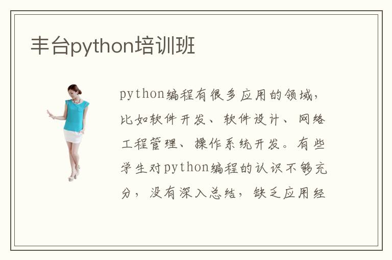 python編程有很多應(yīng)用的領(lǐng)域,比如軟件開發(fā)、軟件設(shè)計、網(wǎng)絡(luò)工程管理、操作系統(tǒng)開發(fā)。有些學生對python編程的認識不夠充分,沒有深入總結(jié),缺乏應(yīng)用經(jīng)驗的積累,導致學習效果特別不好。要是大家出現(xiàn)過類似的狀況,可以報名豐臺python培訓班,老師一般都會講解專業(yè)的知識,為大家展示重要的應(yīng)用課程,使大家對python編程的使用方法和應(yīng)用范疇有更深入的認識。而且老師對同學認真負責,全方位進行檢測,若學生在某個復習階段有難以理解的領(lǐng)域,輔導老師會全面分析,幫助學生解答。python入門難嗎,python編程入門很簡單,主要就是掌握一些語法知識和編程語言的規(guī)范、使用的方式等等。不過要想成為更專業(yè)的python工程師,不能只關(guān)注入門知識,還要掌握很多高層次的應(yīng)用課程。
