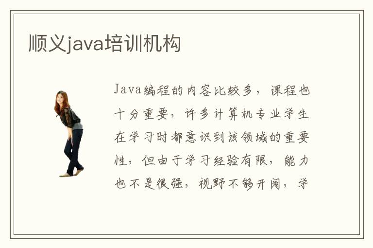 Java編程的內(nèi)容比較多,課程也十分重要,許多計算機專業(yè)學生在學習時都意識到該領域的重要性,但由于學習經(jīng)驗有限,能力也不是很強,視野不夠開闊,學習效率方面和應用方面都沒有理想中的效果。為了達到比較好的學習成績,學生可以參加順義java培訓機構,一般情況下,老師會全方位輔導,為同學分析基礎的編程語言理論課程和應用課程,使得每一位學生發(fā)揮出很好的成績。java的課程可謂相當多樣,其中比較主要的課程有計算機編程語言框架、數(shù)據(jù)結構以及計算機算法、軟件編程開發(fā)環(huán)境、基本的前端開發(fā)設計應用等等。java培訓機構的輔導速度越來越快,原因在于機構提供很系統(tǒng)的課程,選擇趣味性的教學方法,化解學習過程的難點,讓大家更有動力去學習這些知識。