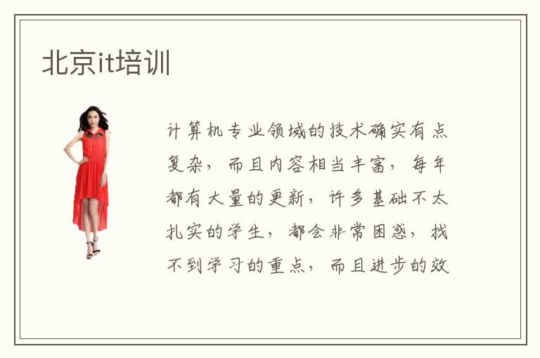 計(jì)算機(jī)專業(yè)領(lǐng)域的技術(shù)確實(shí)有點(diǎn)復(fù)雜,而且內(nèi)容相當(dāng)豐富,每年都有大量的更新,許多基礎(chǔ)不太扎實(shí)的學(xué)生,都會非常困惑,找不到學(xué)習(xí)的重點(diǎn),而且進(jìn)步的效率很低,有時候還會影響個人的學(xué)習(xí)信心。如果有類似困擾,可以報(bào)名專業(yè)的北京it培訓(xùn)學(xué)校,老師往往會針對大家的問題,進(jìn)行詳細(xì)的分析,然后給予多方位的解答,使學(xué)員更快理解自己的缺點(diǎn),一步步進(jìn)行改善。it培訓(xùn)有什么課程,往往有計(jì)算機(jī)編程語言、網(wǎng)絡(luò)開發(fā)與應(yīng)用計(jì)算機(jī)實(shí)踐等等,而且不僅僅只有理論而言,還會介紹許多實(shí)操項(xiàng)目,這樣同學(xué)可以從多個方面共同進(jìn)步。it培訓(xùn)的好處主要體現(xiàn)在幫助同學(xué)挖掘許多不足,然后解答各種困惑,而且學(xué)校的氛圍會更好,大家可以沉浸在這個環(huán)境當(dāng)中,這樣學(xué)習(xí)過程也會更認(rèn)真。