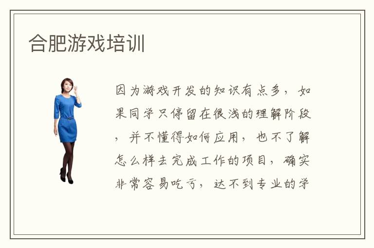 因為游戲開發(fā)的知識有點(diǎn)多,如果同學(xué)只停留在很淺的理解階段,并不懂得如何應(yīng)用,也不了解怎么樣去完成工作的項目,確實非常容易吃虧,達(dá)不到專業(yè)的學(xué)習(xí)標(biāo)準(zhǔn)。有一些同學(xué)早就知道自己的問題,但找不到適合的改善方案,許多情況下都很擔(dān)心自己的成績不夠好。合肥游戲培訓(xùn),游戲培訓(xùn)要多少報名費(fèi),大概要花5000元到9000元,收費(fèi)標(biāo)準(zhǔn)是一個大概的范圍,因為報名的課程并不相同,如果選擇簡單的課程,學(xué)習(xí)時間較短,培訓(xùn)費(fèi)用就會比較低。但如果選高難度課程,費(fèi)用就會提高。游戲輔導(dǎo)班怎么樣挑選,游戲輔導(dǎo)班的挑選過程中,要考慮的是教學(xué)質(zhì)量,培訓(xùn)內(nèi)容以及老師的專業(yè)水平等等。假如同學(xué)沒有專業(yè)老師的指導(dǎo),課程質(zhì)量不高,即便投入許多時間,還是掌握不了。