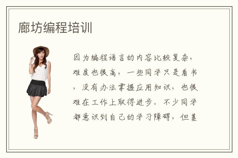 因?yàn)榫幊陶Z言的內(nèi)容比較復(fù)雜,難度也很高,一些同學(xué)只是看書,沒有辦法掌握應(yīng)用知識(shí),也很難在工作上取得進(jìn)步。不少同學(xué)都意識(shí)到自己的學(xué)習(xí)障礙,但基本沒有解決的辦法,導(dǎo)致成績(jī)非常普通。若想取得突破,不妨報(bào)名廊坊編程培訓(xùn),很多老師都有多年經(jīng)驗(yàn),分享很多學(xué)習(xí)的方法,介紹重要的應(yīng)用,確保大家能達(dá)到標(biāo)準(zhǔn)。編程培訓(xùn)有哪些用處,培訓(xùn)機(jī)構(gòu)的好處就是在于幫助大家快速整理知識(shí)框架,分享很多行業(yè)經(jīng)驗(yàn),這樣同學(xué)不僅可以快速掌握前沿的知識(shí)和行業(yè)動(dòng)態(tài),也會(huì)迅速得到提高,找工作更輕松。編程有什么樣的課程,編程語言的課程有很多,比如編程語言的基礎(chǔ)、編程語言的應(yīng)用方法、語言語法知識(shí)。如果連一些基本的內(nèi)容都不知道,可以請(qǐng)教一些輔導(dǎo)班的老師,由老師來親自指導(dǎo)。