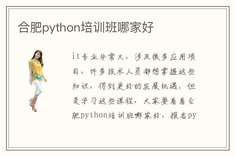 it專業(yè)非?;?,涉及很多應用項目,許多技術(shù)人員都想掌握這些知識,得到更好的發(fā)展機遇。但是學習這些課程,大家要看看合肥python培訓班哪家好,報名python輔導班,制定長期的計劃,畢竟內(nèi)容比較多,無論是軟件,還是硬件,都需要付出比較多的精力。python培訓機構(gòu)培訓能力,往往很強,有多年教學的經(jīng)驗,培養(yǎng)方案也非常豐富,符合不同學習習慣的學生。有些同學不懂哪些課程好,也不了解哪些技術(shù)是重點,所以會很被動。但老師可以把這一些問題整理,一一呈現(xiàn)給大家。python工程師的壓力大不大,python工程師的工作負擔越來越重,但是前景比較好,晉升機會多,大家要完成一些基礎(chǔ)的應用,比如游戲開發(fā),it自動化系統(tǒng)運維,人工智能開發(fā)等等,不要滿足當下。
