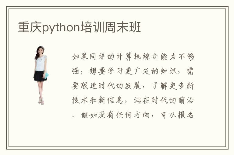 如果同學(xué)的計算機綜合能力不夠強,想要學(xué)習(xí)更廣泛的知識,需要跟進時代的發(fā)展,了解更多新技術(shù)和新信息,站在時代的前沿。假如沒有任何方向,可以報名重慶python培訓(xùn)周末班,因為輔導(dǎo)班的老師會有較強的能力,通過清晰的思路,講解這些知識。python輔導(dǎo)班課程難度高不高,多數(shù)輔導(dǎo)機構(gòu)的課程難度都不算高,老師可開展許多項目,分享大量的經(jīng)驗。若學(xué)生在某一些階段出現(xiàn)不懂的問題,老師可以進行適當(dāng)?shù)陌才?,打開學(xué)生的視野,得到更多收獲,又不用擔(dān)心效率低或者成績不好等等問題。python工程師工作壓力大不大,python工程師的工作壓力會逐漸變大,因為這些領(lǐng)域的發(fā)展很迅速,人才也越來越多,企業(yè)的要求也在上升。如沒有更新自己的知識庫,短期內(nèi)可能會被淘汰。