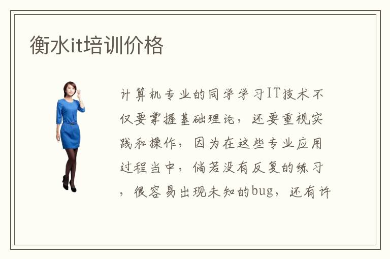 計算機專業(yè)的同學學習IT技術不僅要掌握基礎理論,還要重視實踐和操作,因為在這些專業(yè)應用過程當中,倘若沒有反復的練習,很容易出現(xiàn)未知的bug,還有許多意想不到的困境。若提前做好排練,把各種潛在的問題找到,然后一步步彌補,設計出來的程序或者軟件都比較可靠,也能提前減少許多的運行問題。同學們報班時也會非常關心衡水it培訓價格,其實有一些it機構的口碑不錯,實力很強,培養(yǎng)出來的學生也十分突出,收費比較貴,可能在1萬到3萬。it課外輔導用處很多,如提升同學們的成績,培養(yǎng)同學的信心,創(chuàng)造良好的學習環(huán)境,釋放學員的壓力。it前景好不好,這些領域的待遇高,it專業(yè)的從業(yè)人員的平均年薪是10萬到20萬,有技術和經(jīng)驗的資深工程師每年可以達到百萬。