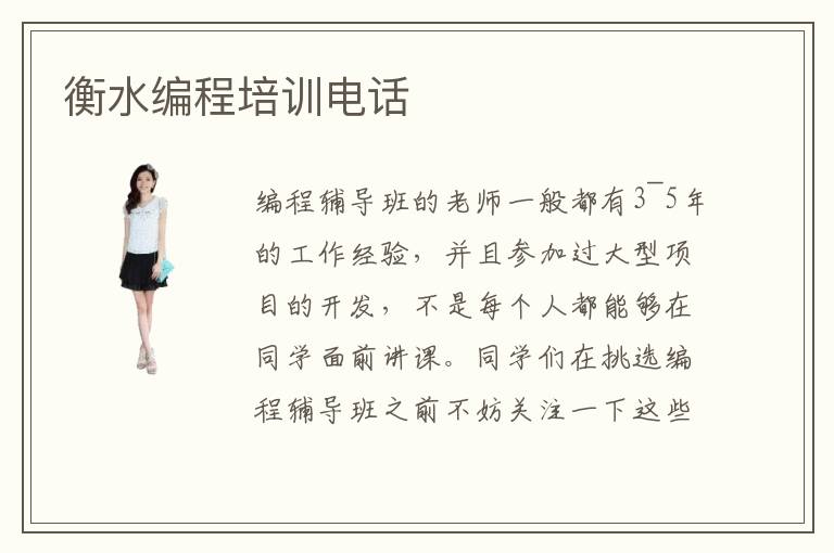編程輔導(dǎo)班的老師一般都有3~5年的工作經(jīng)驗(yàn),并且參加過大型項(xiàng)目的開發(fā),不是每個人都能夠在同學(xué)面前講課。同學(xué)們在挑選編程輔導(dǎo)班之前不妨關(guān)注一下這些老師的資歷,看看是不是在自己的標(biāo)準(zhǔn)之上。另外,在報名的時候,也要看具體課程安排,有些課程安排太緊,對于上班族來說,基本無法抽出時間完成這些課程。如果實(shí)在不了解老師到底怎么樣,不妨直接聯(lián)系一下衡水編程培訓(xùn)電話。編程課外輔導(dǎo)配套設(shè)施很齊全,也十分關(guān)鍵,假如機(jī)構(gòu)缺乏良好的配套設(shè)備不夠多,同學(xué)上機(jī)操作都特別艱難,但課外輔導(dǎo)機(jī)構(gòu)的主要作用就是提升同學(xué)的應(yīng)用能力,因此會投入大量資金購買專業(yè)設(shè)備,爭取讓大家在短期內(nèi)掌握編程基礎(chǔ)入門,還能熟悉各種編程語言的應(yīng)用案例,甚至有能力完成項(xiàng)目。