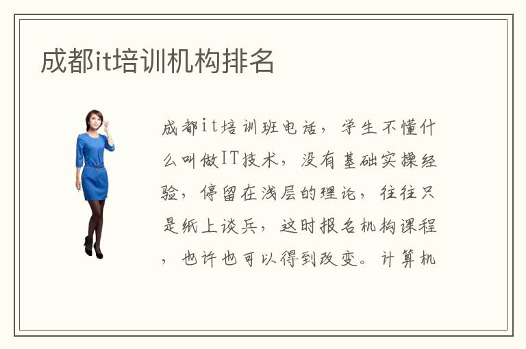 成都it培訓班電話,學生不懂什么叫做IT技術,沒有基礎實操經驗,停留在淺層的理論,往往只是紙上談兵,這時報名機構課程,也許也可以得到改變。計算機相干專業(yè)技術是現(xiàn)現(xiàn)在人們停止專業(yè)技術學習的首先,一方面是因為計算機專業(yè)學習的就業(yè)前景比較廣漠,學好計算機相干專業(yè)關于此后的就業(yè)會很有幫助。計算機專業(yè)的興起使得各地學生對于未來有了更新的定義,開始想要加入到計算機相關專業(yè)的學習隊伍中去,軟件開發(fā)設計專業(yè)、php數(shù)據(jù)庫維護更新專業(yè)以及html5網(wǎng)站開發(fā)設計專業(yè)等都受到學生的廣泛好評。那末,成都IT培訓學校這類單特的講授形式是什么呢。it培訓機構的課程非常豐富,包括計算機編程、軟件設計、網(wǎng)絡工程、網(wǎng)頁開發(fā)等等。
