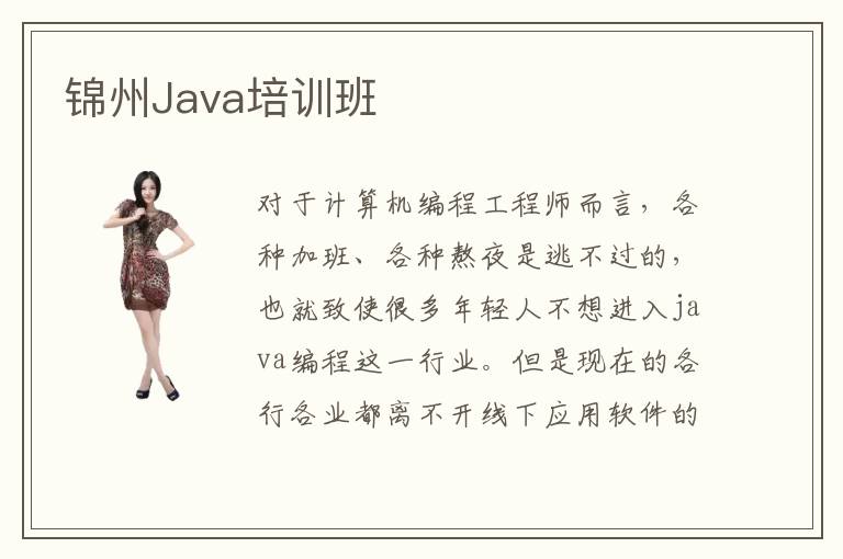 對于計(jì)算機(jī)編程工程師而言,各種加班、各種熬夜是逃不過的,也就致使很多年輕人不想進(jìn)入java編程這一行業(yè)。但是現(xiàn)在的各行各業(yè)都離不開線下應(yīng)用軟件的處理,因此各個(gè)城市也就在不斷培養(yǎng)計(jì)算機(jī)專業(yè)的相關(guān)人才。例如現(xiàn)在北京、上海以及各大一線城市,都在追求進(jìn)步,大批量的培養(yǎng)java編程專業(yè)的學(xué)生是再普通不過的了。錦州Java培訓(xùn)班也是目前錦州比較靠譜的學(xué)習(xí)java編程的培訓(xùn)機(jī)構(gòu),歡迎大家報(bào)名。