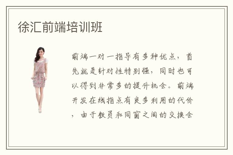 前端一對一指導(dǎo)有多種優(yōu)點,首先就是針對性特別強(qiáng),同時也可以得到非常多的提升機(jī)會。前端開發(fā)在線指點有良多利用的代價,由于教員和同窗之間的交換會加倍頻仍,同窗也能夠疾速掌控好本身的學(xué)習(xí)節(jié)拍,把握良多常識重點,為以后成長打下堅固基礎(chǔ)。web前端課外培訓(xùn)班零基礎(chǔ)難不難,多數(shù)機(jī)構(gòu)安排的課程都不算很難,因為老師會從同學(xué)的角度出發(fā),了解同學(xué)的需求,安排各種訓(xùn)練方案,只要同學(xué)感興趣,都可以報名這些課程,一步步解決大量難題。要想做出改變,可以多了解徐匯web前端培訓(xùn)機(jī)構(gòu)哪個好,找到合適的機(jī)構(gòu)。web前端輔導(dǎo)學(xué)校選擇方法如何,挑選輔導(dǎo)班有很多重要的參考因素,包括教學(xué)方式,培訓(xùn)內(nèi)容,課程重點等。究竟這些專業(yè)的技術(shù)愈來愈多,內(nèi)容愈來愈龐雜,若同窗不太曉得前沿常識,輕易被其余共事超出。