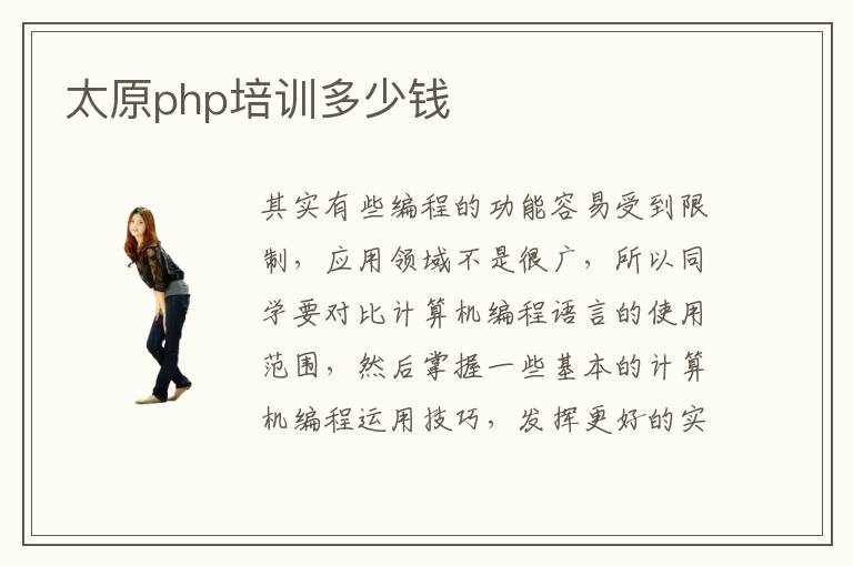 其實(shí)有些編程的功能容易受到限制,應(yīng)用領(lǐng)域不是很廣,所以同學(xué)要對(duì)比計(jì)算機(jī)編程語言的使用范圍,然后掌握一些基本的計(jì)算機(jī)編程運(yùn)用技巧,發(fā)揮更好的實(shí)踐作用。與此相伴的是是各種計(jì)算機(jī)相關(guān)職業(yè)越來越受到人們的追捧,其中就有php培訓(xùn),而太原php培訓(xùn)班同樣在太原遍地開花,而其中辦得較好的有太原好前程,太原微思職業(yè)培訓(xùn)學(xué)校還有達(dá)內(nèi)科技太原培訓(xùn)中太原php培訓(xùn)哪家比較好心。php作為眼前利用最普遍的web網(wǎng)頁設(shè)計(jì)編程語言,存在老練的代碼模板,比擬其余編程語言而言,用php設(shè)計(jì)出來的網(wǎng)頁代碼運(yùn)作速率更快,投入本錢更低,是以學(xué)習(xí)php開發(fā)利用存在普遍的前景。php是什么,這是高級(jí)的編程語言,主要特點(diǎn)就是功能非常強(qiáng)大,而且適用于各種不同的平臺(tái),處理起來也比較簡(jiǎn)單,所以學(xué)生非常愿意選擇這種編程語言。