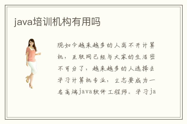 現(xiàn)如今越來越多的人離不開計算機,互聯(lián)網(wǎng)已經(jīng)與大家的生活密不可分了,越來越多的人選擇去學習計算機專業(yè),立志要成為一名高端java軟件工程師。學習java是一個很枯燥的過程,每天面對的就是一串串代碼,在學校的學習是停留在表面的,大多從學校畢業(yè)直接上崗的學生會發(fā)現(xiàn)自己在學校只是粗略的了解了下java,只會一些普通的程序編寫。那么,專業(yè)的java培訓機構有用嗎?