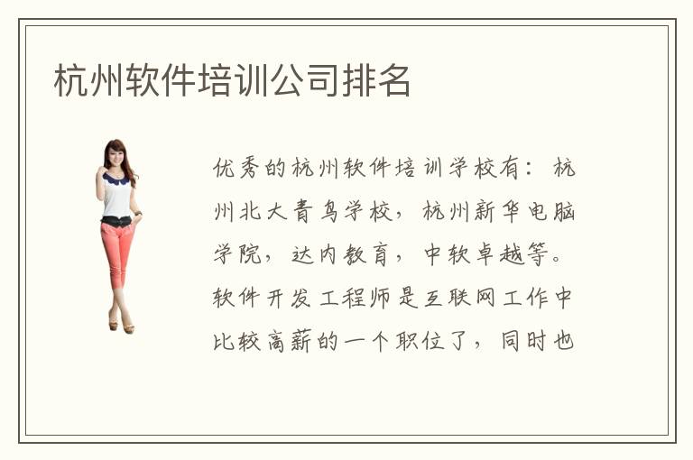 優(yōu)秀的杭州軟件培訓(xùn)學(xué)校有:杭州北大青鳥北大青鳥學(xué)校,杭州新華電腦學(xué)院,達內(nèi)教育,中軟卓越等。軟件開發(fā)工程師是互聯(lián)網(wǎng)工作中比較高薪的一個職位了,同時也是現(xiàn)在非常吃香的職業(yè)之一。很多在杭州軟件學(xué)校班培訓(xùn)過的學(xué)員,都取得了不錯的成就。而我們利用軟件來連接網(wǎng)絡(luò),利用網(wǎng)頁來連接網(wǎng)絡(luò),所以軟件也是當今時代不可缺少的一部分。但輔導(dǎo)機構(gòu)的老師會手把手指導(dǎo),展示具體的操作過程,也會讓同學(xué)的視野更開闊,在以后的學(xué)習(xí)過程中,不僅僅只關(guān)注書本內(nèi)容,還是會關(guān)注更多應(yīng)用課程。在杭州軟件測試培訓(xùn)機構(gòu)培訓(xùn)過的學(xué)員,都是一名出色的軟件工程師。軟件工程師補習(xí)方法一般考慮在線輔導(dǎo)教學(xué)、一對一教學(xué)等等。以是IT行業(yè)一樣合適女性去處置,女性紛歧定非得處置一些文職工作。