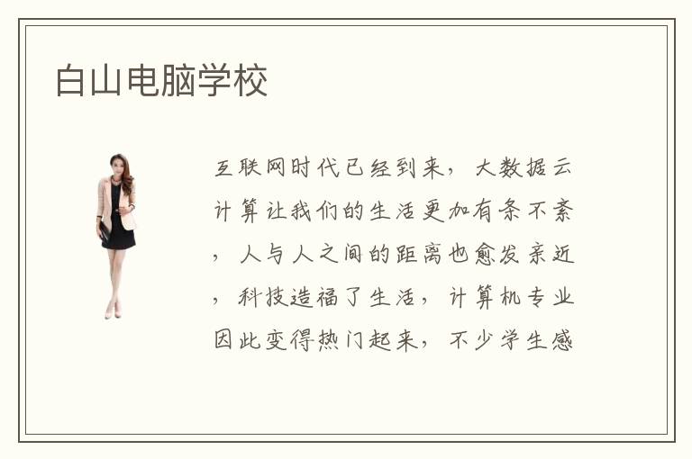 互聯(lián)網(wǎng)時(shí)代已經(jīng)到來(lái),大數(shù)據(jù)云計(jì)算讓我們的生活更加有條不紊,人與人之間的距離也愈發(fā)親近,科技造福了生活,計(jì)算機(jī)專業(yè)因此變得熱門起來(lái),不少學(xué)生感受到了就業(yè)的壓力,計(jì)算機(jī)專業(yè)的學(xué)生亦是如此。白山電腦學(xué)校旨在培養(yǎng)一批鮮活的IT人才,旨在為社會(huì)為企業(yè)運(yùn)輸新鮮的科技力量。白山計(jì)算機(jī)培訓(xùn)機(jī)構(gòu)口碑詳情怎么樣?白山電腦學(xué)校官方介紹是什么?