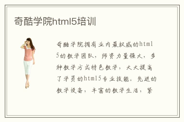 奇酷學(xué)院擁有業(yè)內(nèi)最權(quán)威的html5的教學(xué)團(tuán)隊(duì),師資力量強(qiáng)大,多種教學(xué)方式特色教學(xué),大大提高了學(xué)員的html5專業(yè)技能。先進(jìn)的教學(xué)設(shè)備,豐富的教學(xué)生活,緊密的學(xué)習(xí)課程等等這樣一系列的學(xué)習(xí)生活,無不讓學(xué)員感受到權(quán)威團(tuán)隊(duì)的專業(yè)性。授課老師都是博士,碩士等等高學(xué)歷,并且擁有幾年的html5工作經(jīng)驗(yàn),以學(xué)員今后畢業(yè)工作為目的,授課教學(xué)。