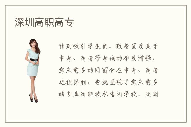特別吸引學生們。跟著國度關(guān)于中考、高考等考試的難度增強,愈來愈多的同窗會在中考、高考進程掉利,也就呈現(xiàn)了愈來愈多的專業(yè)高職技術(shù)培訓學校。此刻的企業(yè)其實不是將全數(shù)的眼亮都放在了學歷學位上,而是比較看中求職職員的專業(yè)技術(shù)水平以及實踐操縱經(jīng)歷,其實不會由于一味尋求高學歷的員工而錯過良多學歷不高的高水平技術(shù)型人材。入學門檻相對比較低。高職院校其實還是有非常多優(yōu)質(zhì)的,不過有一些學??赡軙嬖谝稽c點專業(yè)缺陷,導致很多家長覺得找高職院校的教學質(zhì)量比較糟糕,不值得到這些學?;ê脦啄甑臅r間。與一般高中培育綜關(guān)性分歧,職高偏重于培育人人的專業(yè)素養(yǎng)和妙技。深圳高職學校首要培訓的內(nèi)容籠蓋面比較廣,議決屢次實踐相同,能夠精確地培育好學生們的專業(yè)技巧。