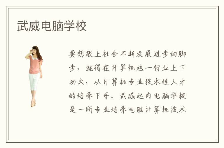 要想跟上社會(huì)不斷發(fā)展進(jìn)步的腳步,就得在計(jì)算機(jī)這一行業(yè)上下功夫,從計(jì)算機(jī)專業(yè)技術(shù)性人才的培養(yǎng)下手。武威達(dá)內(nèi)電腦學(xué)校是一所專業(yè)培養(yǎng)電腦計(jì)算機(jī)技術(shù)人才的學(xué)校,注重理論基礎(chǔ)與實(shí)踐項(xiàng)目經(jīng)驗(yàn)的雙重培訓(xùn)。各大企業(yè)十分信任武威達(dá)內(nèi)電腦學(xué)校,培訓(xùn)期間開設(shè)了豐富的項(xiàng)目活動(dòng),積極鼓勵(lì)學(xué)員們參與到各大項(xiàng)目的實(shí)踐設(shè)計(jì)過(guò)程中去,充分了解到一個(gè)項(xiàng)目的完成所需要的心力。