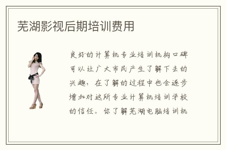 蕪湖影視后期培訓費用