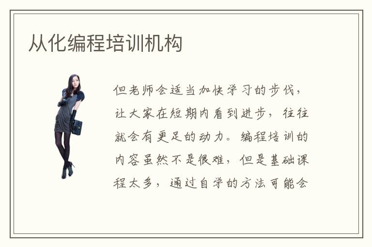 但老師會適當加快學習的步伐,讓大家在短期內看到進步,往往就會有更足的動力。編程培訓的內容雖然不是很難,但是基礎課程太多,通過自學的方法可能會比較慢一點,所以大家應該要懂得去掌握更加高效的設計方案,但如果和自己學習的進程比較慢,還可以考慮從化編程培訓速成班,因為這些機構會提供高效的學習方法,展示多個維度的教學內容,讓學生可以全面提高自己的編程學習應用優(yōu)勢。如何選編程培訓機構,要考慮技術水準、教學能力和培訓目標等等。大家如果想成為比較專業(yè)的編程工作人員,首先要投入時間學習,掌握深層次的應用,如果實在無法進步,或者工作效率很低,可以挑選從化編程培訓班,找到自己需要學習的課程。有的it輔導機構課程設置非常嚴謹,有高水平的科研團隊,專門針對行業(yè)局勢和工作需要制定多層次的課程。