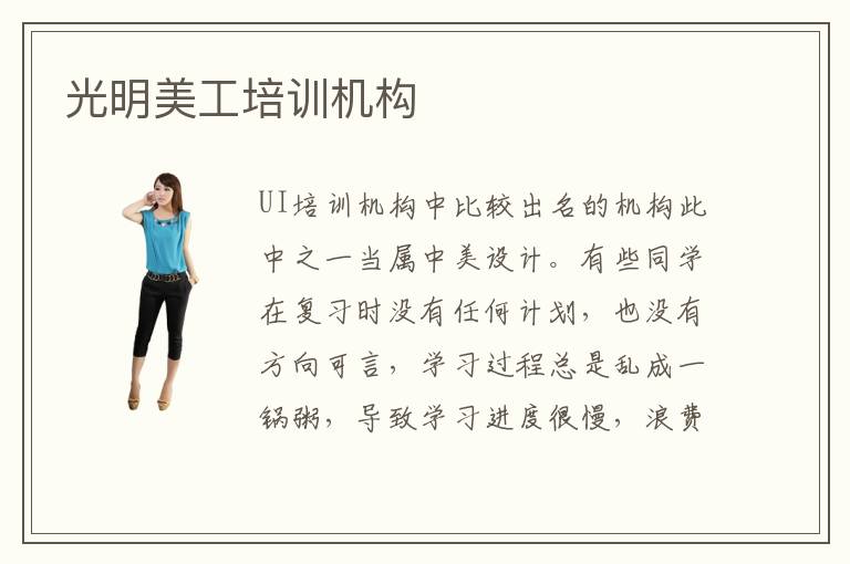 UI培訓機構中比較出名的機構此中之一當屬中美設計。有些同學在復習時沒有任何計劃,也沒有方向可言,學習過程總是亂成一鍋粥,導致學習進度很慢,浪費許多復習時間,這還會影響個人的學習信心,但報名軟件培訓機構,同學便可得到老師的一對一輔導,從而加快學習步伐,掌握大量的知識。還有一些同學遇到障礙時,不知道怎么應對,常常喜歡逃避,沒有正面解決,導致學習效率很低。光明UI培訓班為了給學生有更為真切的學習體驗,積極尋找當?shù)赜心芰?、有意愿的企業(yè)進行合作,并且多次開展計算機UI設計實踐項目,鼓勵督促學生加快嘗試UI設計新技術。界面設計內容比較多,如果想要設計一個比較好的方案,需要有較長的時間,也要有很成熟的應用。