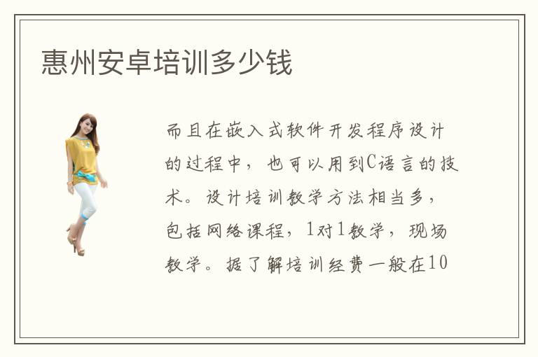 而且在嵌入式軟件開(kāi)發(fā)程序設(shè)計(jì)的過(guò)程中,也可以用到C語(yǔ)言的技術(shù)。設(shè)計(jì)培訓(xùn)教學(xué)方法相當(dāng)多,包括網(wǎng)絡(luò)課程,1對(duì)1教學(xué),現(xiàn)場(chǎng)教學(xué)。據(jù)了解培訓(xùn)經(jīng)費(fèi)一般在10000-15000之間,培訓(xùn)周期一般是3-5個(gè)月。編程有哪些教程,。編程輔導(dǎo)課程難嗎,要看同學(xué)們報(bào)名的編程類型,有一些入門(mén)級(jí)的編程,比如Java編程,Python編程,難度并不算特別高。若成績(jī)不好,可以選擇高效率的惠州編程培訓(xùn)班,老師往往結(jié)合同學(xué)的問(wèn)題,安排不同的課程,減少學(xué)生的壓力。亞嵌嵌入式系統(tǒng)培訓(xùn)課程非常重要,很多同學(xué)在剛剛起步的階段能力都不是很強(qiáng),專業(yè)水平不夠突出,優(yōu)勢(shì)也不夠明顯,難免會(huì)遇到很多障礙,而輔導(dǎo)機(jī)構(gòu)可以加深同學(xué)對(duì)知識(shí)的理解,懂得更多有用的技術(shù)。