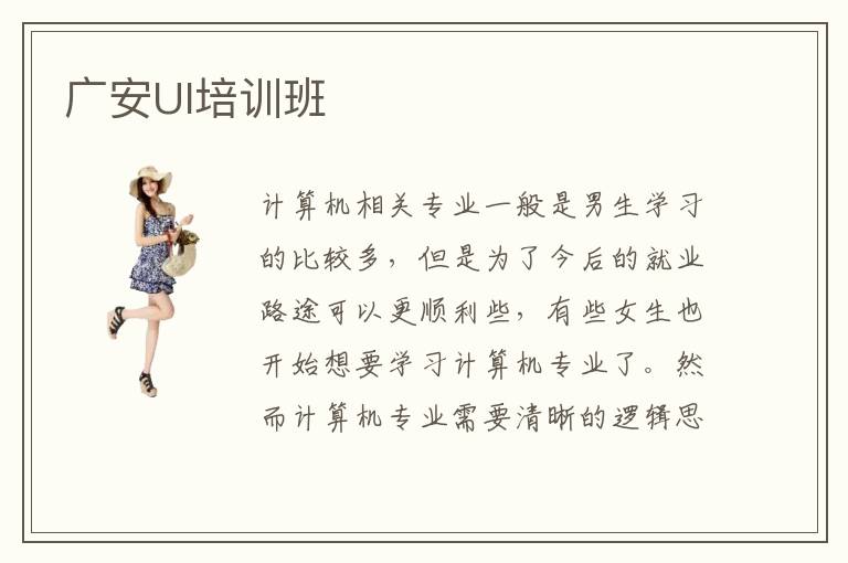計(jì)算機(jī)相關(guān)專業(yè)一般是男生學(xué)習(xí)的比較多,但是為了今后的就業(yè)路途可以更順利些,有些女生也開(kāi)始想要學(xué)習(xí)計(jì)算機(jī)專業(yè)了。然而計(jì)算機(jī)專業(yè)需要清晰的邏輯思維能力以及冷靜的分析頭腦,對(duì)于。一般女生而言學(xué)習(xí)起來(lái)還是比較具有難度的。而UI設(shè)計(jì)作為計(jì)算機(jī)專業(yè)中最適合女生學(xué)習(xí)的,在國(guó)內(nèi)目前也具有廣泛的發(fā)展前景。那么,廣安UI培訓(xùn)班怎么樣呢?適不適合零基礎(chǔ)的女生學(xué)習(xí)呢?