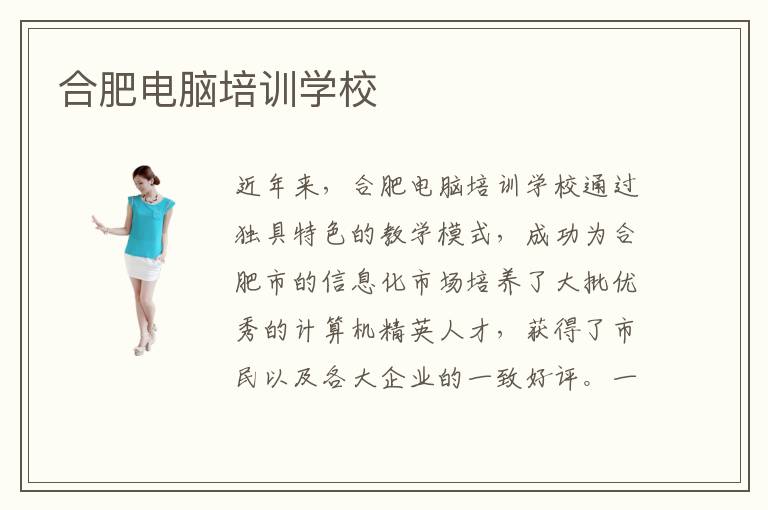 近年來,合肥電腦培訓(xùn)學(xué)校通過獨(dú)具特色的教學(xué)模式,成功為合肥市的信息化市場(chǎng)培養(yǎng)了大批優(yōu)秀的計(jì)算機(jī)精英人才,獲得了市民以及各大企業(yè)的一致好評(píng)。一方面在為合肥電腦培訓(xùn)學(xué)校攢下良好口碑的同時(shí),越來越多的家長(zhǎng)將自己的孩子送到合肥電腦培訓(xùn)學(xué)校,進(jìn)行專業(yè)的課程培訓(xùn)。另一方面很多知名互聯(lián)網(wǎng)軟件企業(yè)也都與合肥電腦培訓(xùn)學(xué)校簽訂了協(xié)議,保持著一種長(zhǎng)期穩(wěn)定的合作關(guān)系。