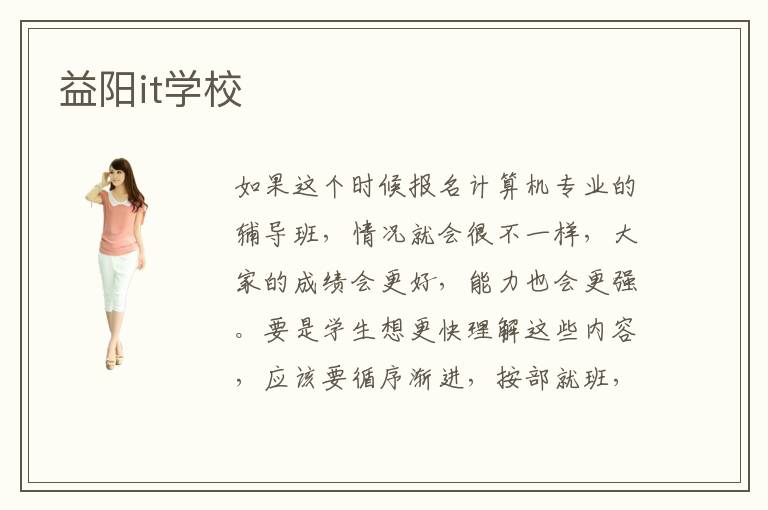 如果這個時候報名計算機專業(yè)的輔導(dǎo)班,情況就會很不一樣,大家的成績會更好,能力也會更強。要是學(xué)生想更快理解這些內(nèi)容,應(yīng)該要循序漸進,按部就班,從基礎(chǔ)的開始,一點一點掌握it專業(yè)的內(nèi)容。it需要學(xué)什么,it輔導(dǎo)機構(gòu)要學(xué)習(xí)的內(nèi)容比較多,比如掌握一些基礎(chǔ)的概論知識,包括數(shù)據(jù)庫管理概論,程序開發(fā)概論,網(wǎng)頁設(shè)計概論,而且還應(yīng)該多理解it專業(yè)的應(yīng)用知識。如果有類似的困擾,學(xué)生一方面可以多投入時間在家里自學(xué),掌握一些基本應(yīng)用,另外一方面可以報班,比如益陽it培訓(xùn)班,選擇合適的IT專業(yè)應(yīng)用指導(dǎo)課程,獲得更多進步的機會。四職業(yè)素養(yǎng)的養(yǎng)成。it工程師的待遇計算不錯,有些工程師一個月的待遇就能達(dá)到15000~30000,但如果剛剛起步,就不要期待薪水,還是要多強化個人能力。