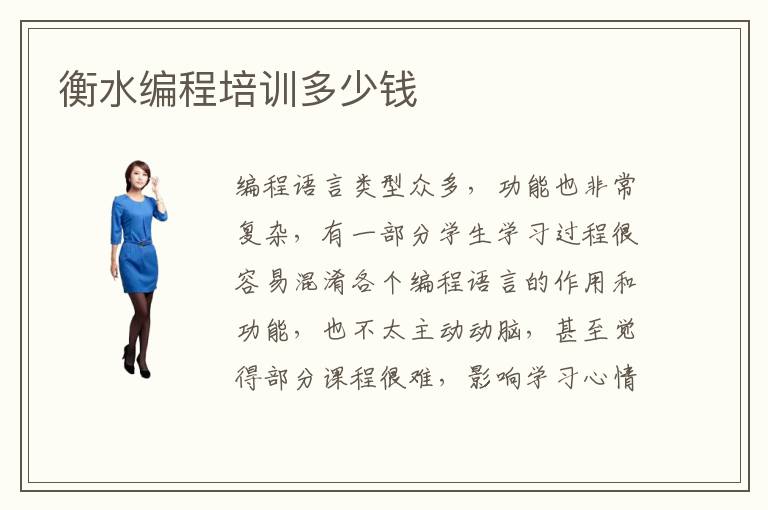 編程語言類型眾多,功能也非常復雜,有一部分學生學習過程很容易混淆各個編程語言的作用和功能,也不太主動動腦,甚至覺得部分課程很難,影響學習心情和效率。有些課程比較新穎,但同學還是要認真去積累,才能掌握更多應用的要求,取得更顯著的進步。軟件編程入門簡單嗎,軟件編程工程師的教學課程內(nèi)容比較難,有一些入門級的課程很快就能掌握,但如果是難度較高的知識,需要大家認真去積累經(jīng)驗,調(diào)整學習的思路,制定詳細的學習規(guī)劃,擁有長遠的學習技巧。衡水編程培訓水平是國內(nèi)一流的,每年城市為衡水地域的計算機編程行業(yè)培育多量量優(yōu)異的專業(yè)人材。如果老師的能力非常有限,無法回答同學的專業(yè)問題,而且也沒有詳細的課程規(guī)劃,同學會收獲很少,甚至還會影響學習信心。